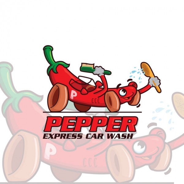 这辆logo为胡椒快捷洗车有一个响亮的问候。logo和品牌标识由新加坡